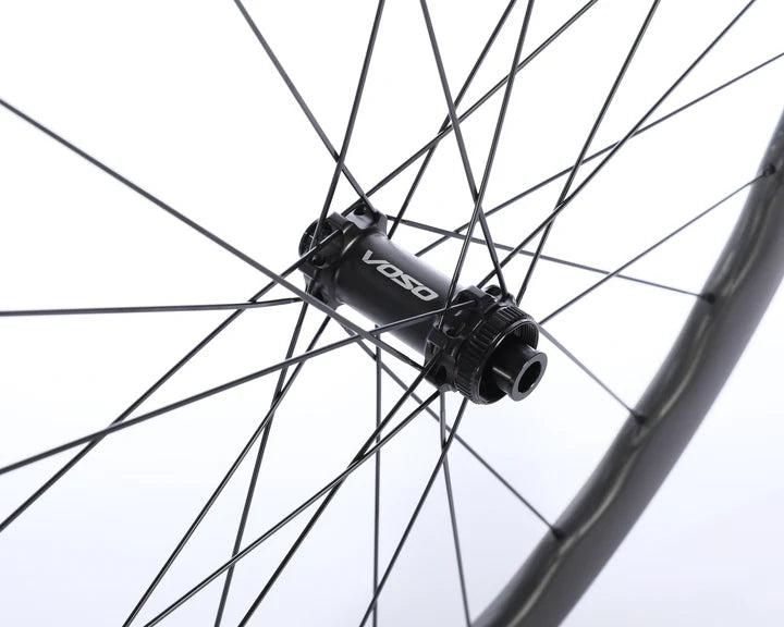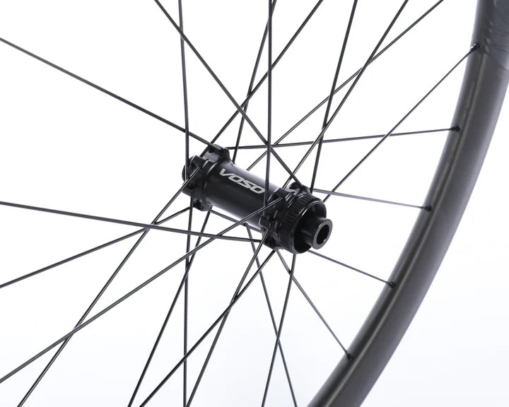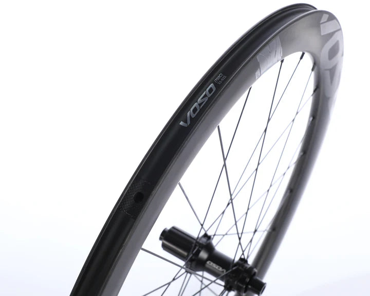 SCOM VOSO LITE Disc Brake Wheelset combines aerodynamic excellence, exceptional stiffness, and a featherlight construction to revolutionize your cycling experience. The aerodynamic design slices through the air, allowing for higher speeds with less energy expenditure. The wheelset's stiffness ensures instantaneous power transfer and responsive handling, enhancing overall bike control. Weighing impressively light, it minimizes rotational mass for a competitive edge. The SCOM VOSO LITE Wheelset offers two hub options: regular bearings for smooth and reliable performance, and ceramic bearings for low friction and exceptional durability. Experience cutting-edge engineering and performance with the SCOM VOSO LITE Wheelset, setting a new standard in cycling excellence for riders of all levels.