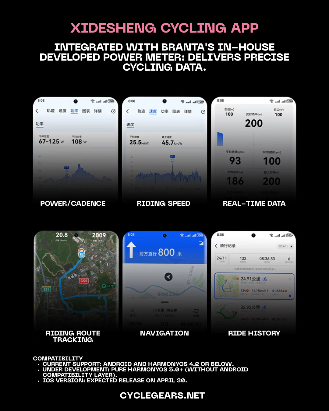 • Branta Cycling App Compatibility: Tracks ride data (GPS navigation, power/cadence, speed, ride history).